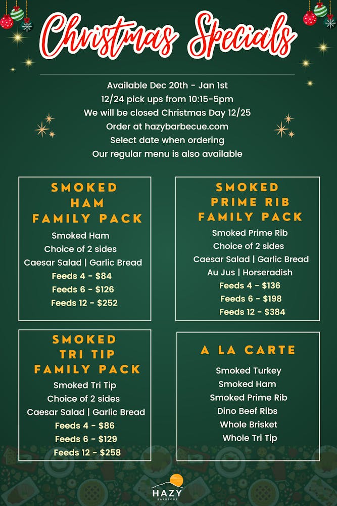 Have questions on Christmas Eve? Email us at info@hazybbq.com