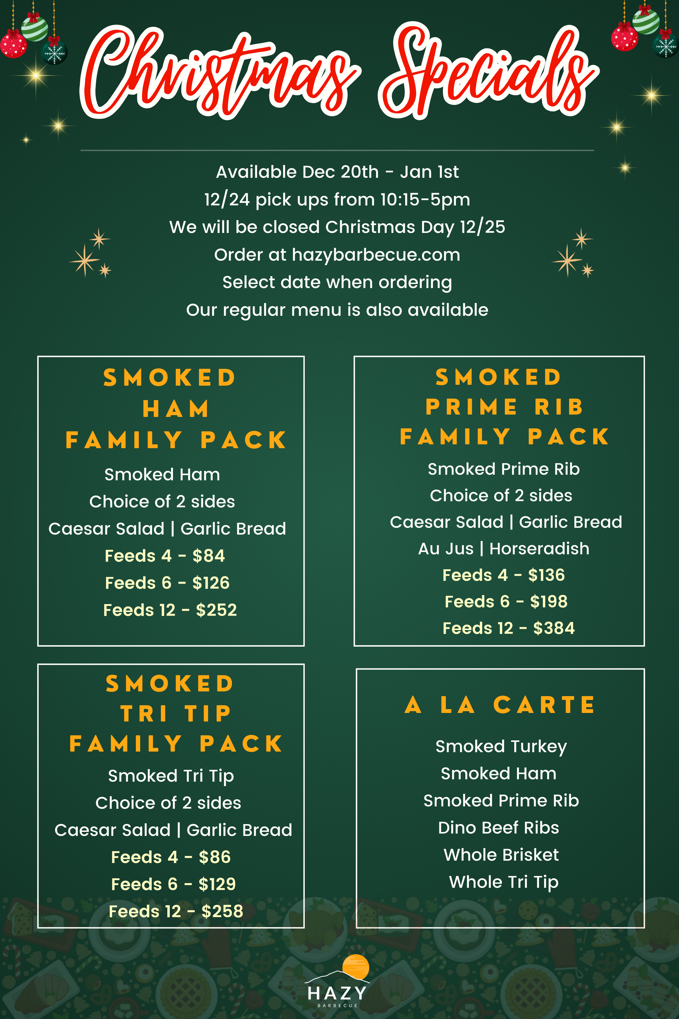 Have questions on Christmas Eve? Email us at info@hazybbq.com